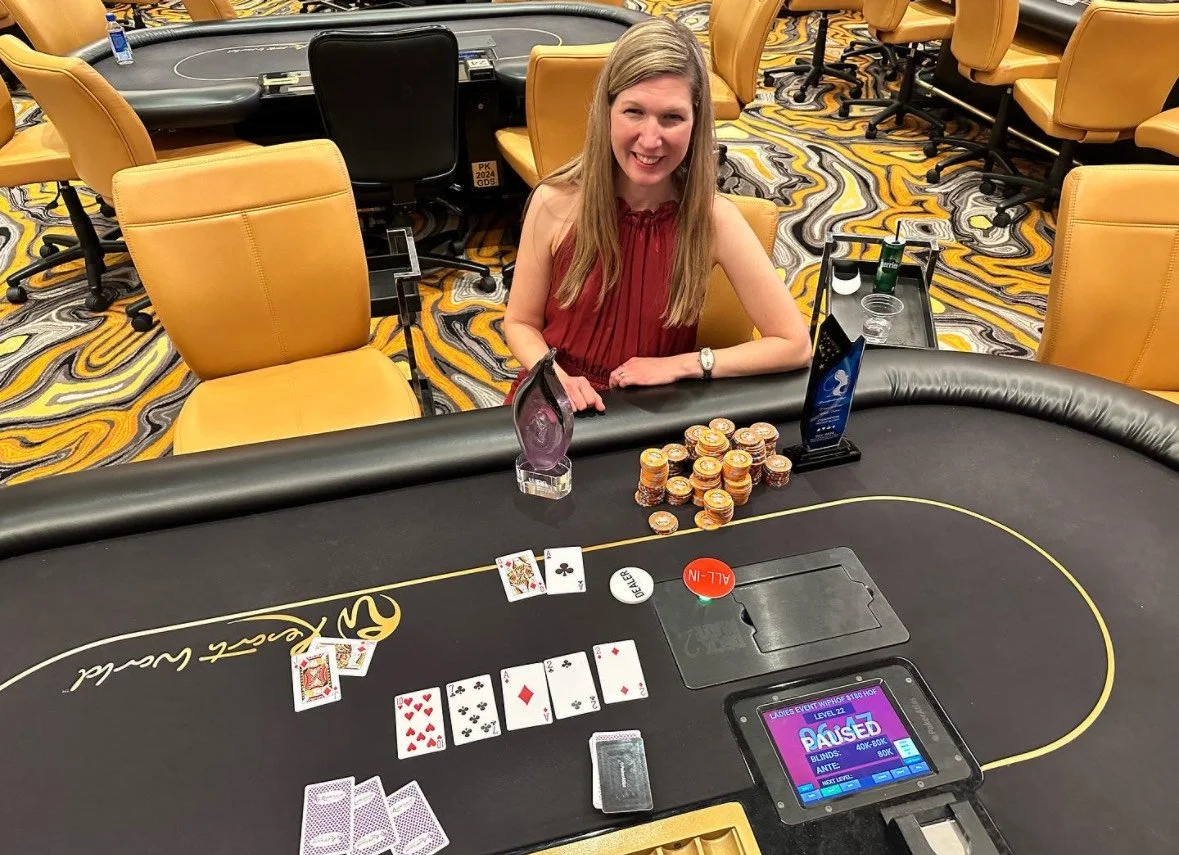 AJ Rudolph is a Chicago area resident and has been a poker player for 20 years. She’s been teaching new/intermediate players for 4 years and is the Vice President of the Women’s Poker Association. She works for Poker Pro Faraz Jaka on his coaching site and has won tournaments from Malta to Las Vegas. AJ is a motivational speaker and women’s advocate.